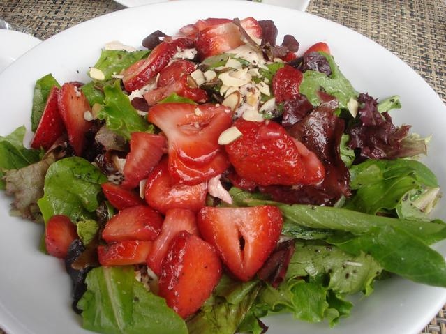 This dish "chicken salad with strawberries" provides about 175 calories each person (700 total calories).